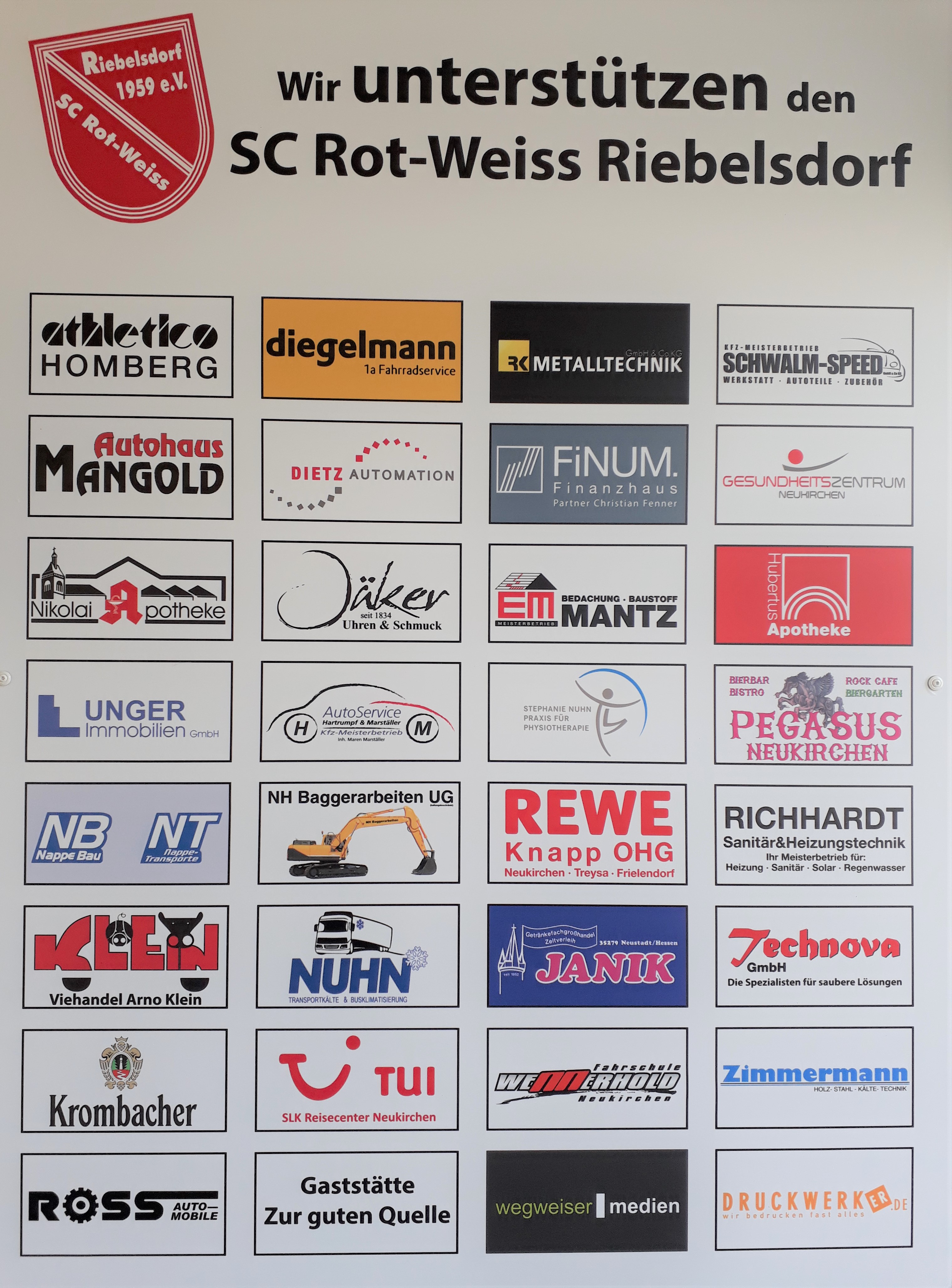 Der Sportclub Rot Weiß Riebelsdorf e.V. möchte sich an dieser Stelle bei all seinen Sponsoren für die gute Unterstützung in allen Abteilungen bedanken!
